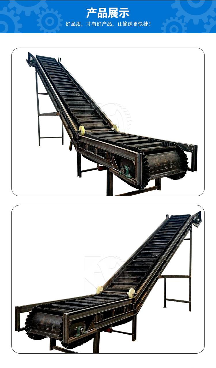 大傾角皮帶輸送機 依靠其特有的優(yōu)勢,在企業(yè)中的使用越來越普遍,在提升高度相同的情況下,所占地面和空間少,并且具有常規(guī)帶式輸送機的所有特點,投資成本低,因而在生產運輸